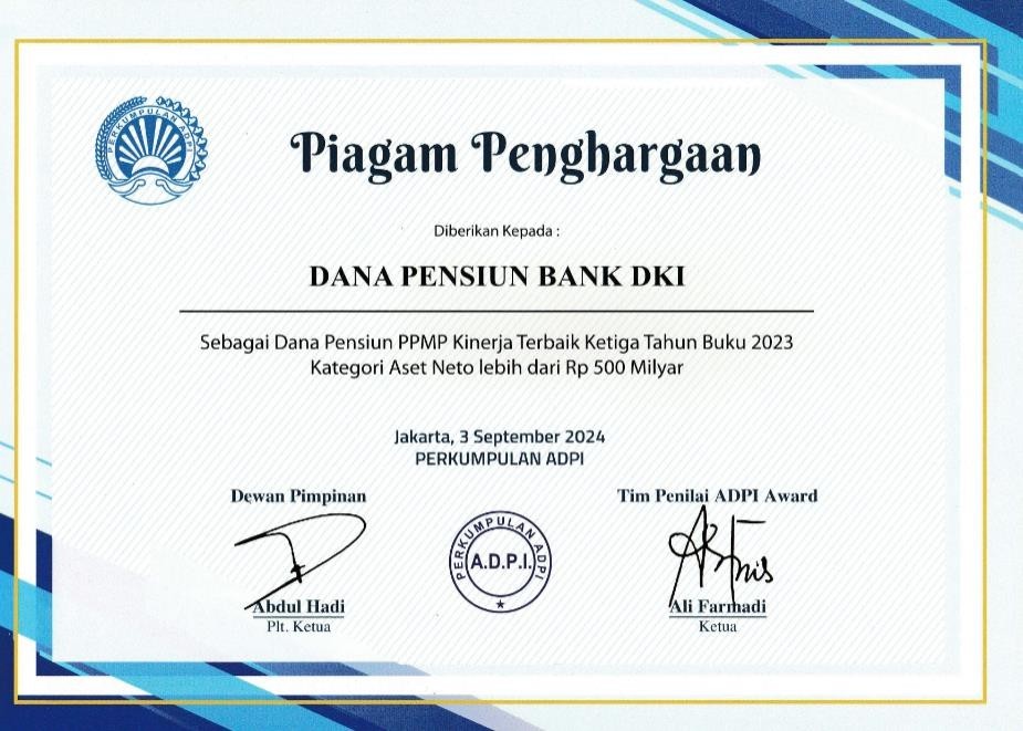Sebagai Dana Pensiun PPMP Kinerja Terbaik Ketiga Tahun Buku 2023 Kategori Aset Neto lebih dari Rp 500 Milyar
